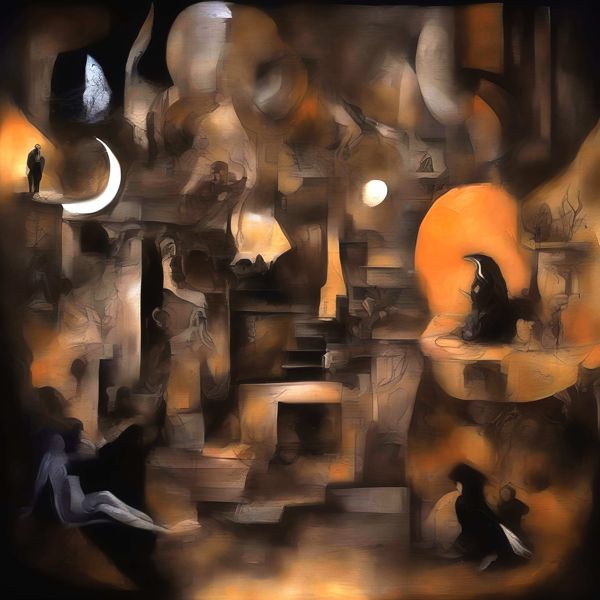 これらの画像は通常の AI アートとはちがう独自の方法を使って作っています. AI アートは AI にプロンプト (または呪文) とよばれる英語の記述をあたえて作画した画像ですが, Stable Diffusion,DALL・E 2,Midjourney などの AI プログラムによって 2022 年に爆発的に普及しました. AI アートで望む画像を作るために通常は比較的細かい指示を与えます. しかしデイシンではおもに 1〜4 語程度の短いことばや造語を Stable Diffusion XL 1.0 (1024) を使用している OpenArt,NightCafe などのウェブサイトで使用して,そのプログラムがもつ知識をいかして自由に (ジェネラティブに,創発的に) 画像をつくらせています. コントラストの調整等はしていますが,描きなおさせたり加筆したりするようなことはしていません.