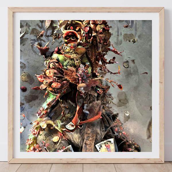 In AI art, the images generated are usually quite rough—about the size of an A6 print (roughly 500–1000 pixels on each side). To make them suitable for presentation, I use a technique called super-resolution, which increases the resolution 4–8 times higher than the original, adding finer detail. However, please note that the resolution of the product image shown above is about the same as the original and has not been upscaled.