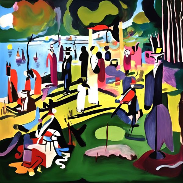 制作者と AI (AI アート作成用のプログラム Stable Diffusion XL 1.0 (1024)) とからなるアートユニット カナブストラクド によるアート画像です.そのプログラムに「Kanabstracd absurdism Seurat」ということば (prompt) をあたえて創造させました. 負のプロンプトとして「mesh」を指定しています.
