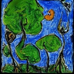 🖼 (絵画) という絵文字や “painting” などのことばとともに短い造語や数字を AI にあたえて描いた画像です.