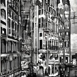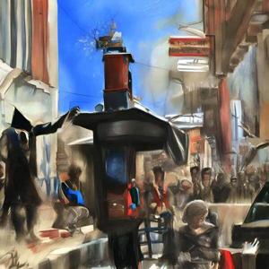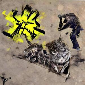 🖼 (絵画) という絵文字や “painting” などのことばとともに短い造語や数字を AI にあたえて描いた画像です.