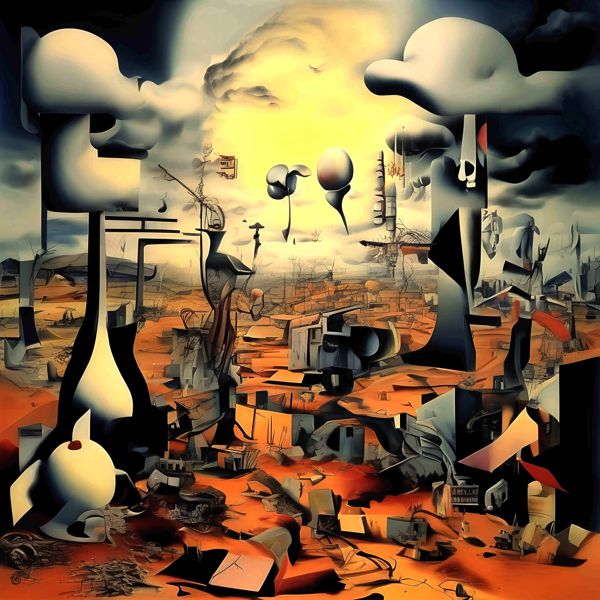 制作者と AI (AI アート作成用のプログラム Stable Diffusion XL 1.0 (1024)) とからなるアートユニット カナブストラクド によるアート画像です.そのプログラムに「Kanabstracd modern surrealism」ということば (prompt) をあたえて創造させました. 負のプロンプトとして「surrealis mesh」を指定しています.