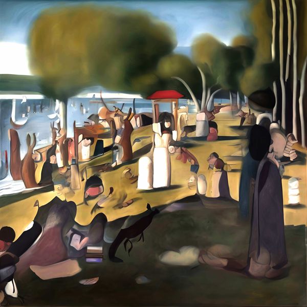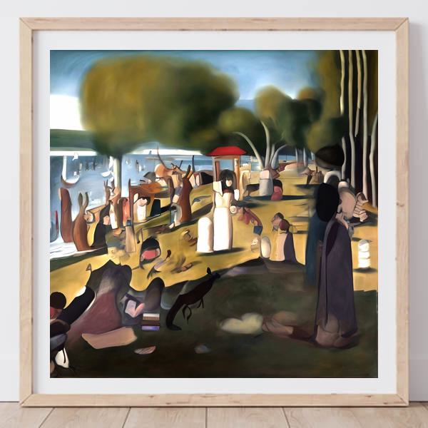 This image was created by ‘Kanabstracd,’ an art unit formed by the creator and the AI (Stable Diffusion XL 1.0 (1024), a program for creating AI artworks). I gave the program the word ‘Kanabstracd absurdism Seurat’ as a prompt and let it create. Also “mesh ” was used as the negative prompt.