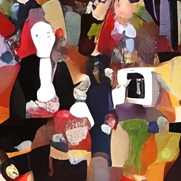 This image was created by ‘Kanabstracd,’ an art unit formed by the creator and the AI (Stable Diffusion XL 1.0 (1024), a program for creating AI artworks). I gave the program the word ‘Kanabstracd absurdism Seurat’ as a prompt and let it create.