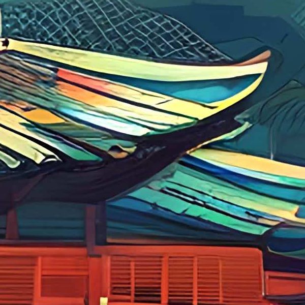 制作者と AI (AI アート作成用のプログラム Stable Diffusion XL 1.0 (1024)) とからなるアートユニット カナブストラクド によるアート画像です.そのプログラムに「Kanabstracd surrealism Hiroshige」ということば (prompt) をあたえて創造させました. 負のプロンプトとして「surrealism Hiroshige arrows」を指定しています.