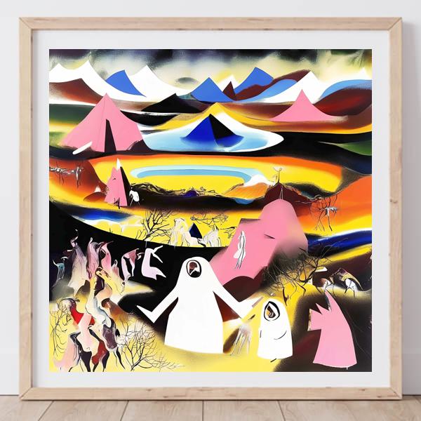 These images are created by our original method, which is different from usual AI art images. AI art images are created by giving English description called prompt. Many AI art images were created by using AI art programs such as Stable Diffusion,DALL・E 2,or Midjourney in 2022. To create expected images by AI art, a detailed description is usually given. However, we usually give only a few words or a coined word to web sites of OpenArt, NightCafe, etc., which use Stable Diffusion XL 1.0 (1024); That is, the program create images generatively and emergently using the knowledge of the program freely. The contrast of created images are adjusted, but they were not modified.
