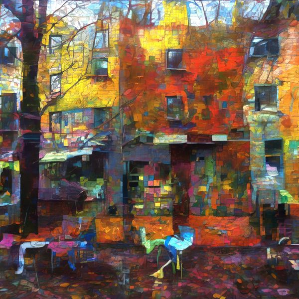 こうやって作られる「意図しない」画像も「AI アート」とは呼ばれるものの,かならずしもアートとはいえないと考えています. しかし,思いもよらない画像や特定の画家風の部分がありながらその作品とはちがうスタイルの画像,模様やステンドグラスに埋め込まれた猫など,様々な興味ぶかい画像がつくれます.