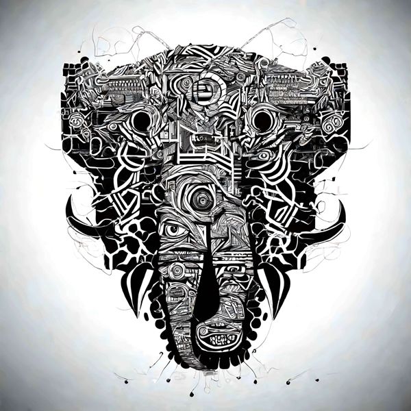 これらの画像は通常の AI アートとはちがう独自の方法を使って作っています. AI アートは AI にプロンプト (または呪文) とよばれる英語の記述をあたえて作画した画像ですが, Stable Diffusion,DALL・E 2,Midjourney などの AI プログラムによって 2022 年に爆発的に普及しました. AI アートで望む画像を作るために通常は比較的細かい指示を与えます. しかしデイシンではおもに 1〜4 語程度の短いことばや造語を Stable Diffusion XL 1.0 (1024) を使用している OpenArt,NightCafe などのウェブサイトで使用して,そのプログラムがもつ知識をいかして自由に (ジェネラティブに,創発的に) 画像をつくらせています. コントラストの調整等はしていますが,描きなおさせたり加筆したりするようなことはしていません.