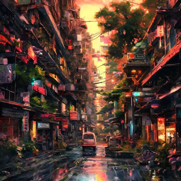 これらの画像は通常の AI アートとはちがう独自の方法を使って作っています. AI アートは AI にプロンプト (または呪文) とよばれる英語の記述をあたえて作画した画像ですが, Stable Diffusion,DALL・E 2,Midjourney などの AI プログラムによって 2022 年に爆発的に普及しました. AI アートで望む画像を作るために通常は比較的細かい指示を与えます. しかしデイシンではおもに 1〜4 語程度の短いことばや造語を Stable Diffusion XL 1.0 (1024) を使用している OpenArt,NightCafe などのウェブサイトで使用して,そのプログラムがもつ知識をいかして自由に (ジェネラティブに,創発的に) 画像をつくらせています. コントラストの調整等はしていますが,描きなおさせたり加筆したりするようなことはしていません.
