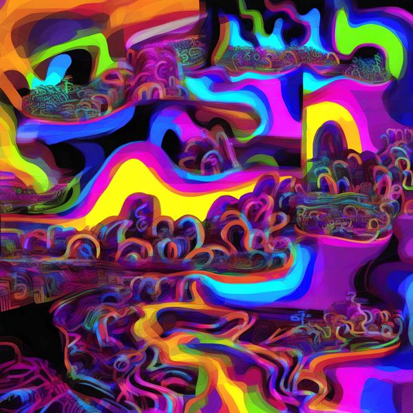 これらの画像は通常の AI アートとはちがう独自の方法を使って作っています. AI アートは AI にプロンプト (または呪文) とよばれる英語の記述をあたえて作画した画像ですが, Stable Diffusion,DALL・E 2,Midjourney などの AI プログラムによって 2022 年に爆発的に普及しました. AI アートで望む画像を作るために通常は比較的細かい指示を与えます. しかしデイシンではおもに 1〜4 語程度の短いことばや造語を Stable Diffusion XL 1.0 (1024) を使用している OpenArt,NightCafe などのウェブサイトで使用して,そのプログラムがもつ知識をいかして自由に (ジェネラティブに,創発的に) 画像をつくらせています. コントラストの調整等はしていますが,描きなおさせたり加筆したりするようなことはしていません.