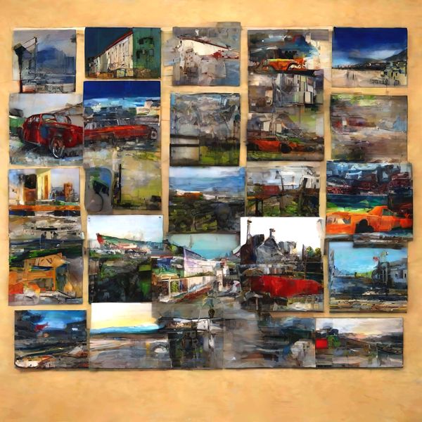 These images are created by our original method, which is different from usual AI art images. AI art images are created by giving English description called prompt. Many AI art images were created by using AI art programs such as Stable Diffusion,DALL・E 2,or Midjourney in 2022. To create expected images by AI art, a detailed description is usually given. However, we usually give only a few words or a coined word to web sites of OpenArt, NightCafe, etc., which use Stable Diffusion XL 1.0 (1024); That is, the program create images generatively and emergently using the knowledge of the program freely. The contrast of created images are adjusted, but they were not modified.