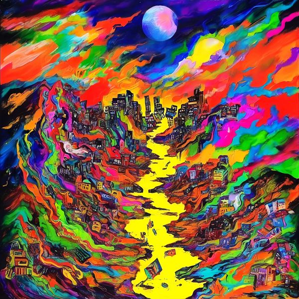 制作者と AI (AI アート作成用のプログラム Stable Diffusion XL 1.0 (1024)) とからなるアートユニット カナブストラクド によるアート画像です.そのプログラムに「Kanabstracd surrealism tragedy」ということば (prompt) をあたえて創造させました. 負のプロンプトとして「surrealism tragedy mesh」を指定しています.