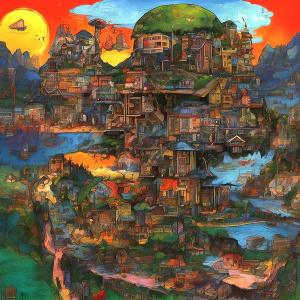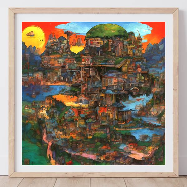 This image was created by ‘Kanabstracd,’ an art unit formed by the creator and the AI (Stable Diffusion XL 1.0 (1024), a program for creating AI artworks). I gave the program the word ‘Kanabstracd absurd_realism Hundertwasser’ as a prompt and let it create. Also “Hundertwasser mesh ” was used as the negative prompt.