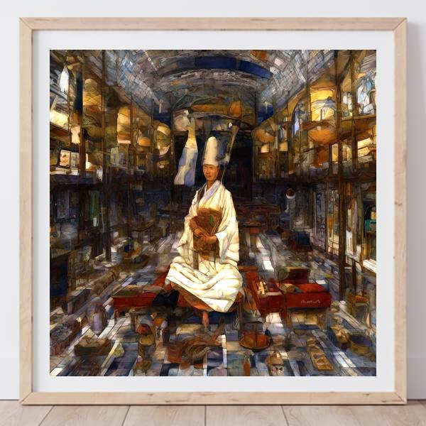 In AI art, the images generated are usually quite rough—about the size of an A6 print (roughly 500–1000 pixels on each side). To make them suitable for presentation, I use a technique called super-resolution, which increases the resolution 4–8 times higher than the original, adding finer detail. However, please note that the resolution of the product image shown above is about the same as the original and has not been upscaled.
