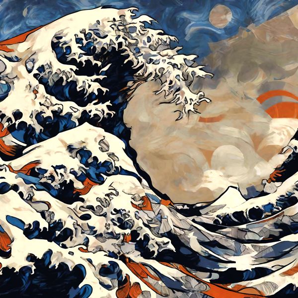 This image was created by ‘Kanabstracd,’ an art unit formed by the creator and the AI (Stable Diffusion XL 1.0 (1024), a program for creating AI artworks). I gave the program the word ‘Kanabstracd Hokusai’ as a prompt and let it create. Also “Hokusai” was used as the negative prompt.