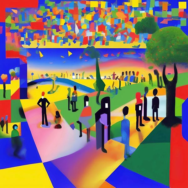 This image was created by ‘Kanabstracd,’ an art unit formed by the creator and the AI (Stable Diffusion XL 1.0 (1024), a program for creating AI artworks). I gave the program the word ‘Kanabstracd surrealism Seurat’ as a prompt and let it create. Also “Seurat woodgrain ” was used as the negative prompt.