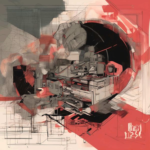 制作者と AI (AI アート作成用のプログラム Stable Diffusion XL 1.0 (1024)) とからなるアートユニット カナブストラクド によるアート画像です.そのプログラムに「Kanabstracd graphic_score」ということば (prompt) をあたえて創造させました. 負のプロンプトとして「graphic_score bows」を指定しています.