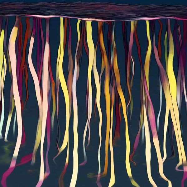 これらの画像は通常の AI アートとはちがう独自の方法を使って作っています. AI アートは AI にプロンプト (または呪文) とよばれる英語の記述をあたえて作画した画像ですが, Stable Diffusion,DALL・E 2,Midjourney などの AI プログラムによって 2022 年に爆発的に普及しました. AI アートで望む画像を作るために通常は比較的細かい指示を与えます. しかしデイシンではおもに 1〜4 語程度の短いことばや造語を Stable Diffusion XL 1.0 (1024) を使用している OpenArt,NightCafe などのウェブサイトで使用して,そのプログラムがもつ知識をいかして自由に (ジェネラティブに,創発的に) 画像をつくらせています. コントラストの調整等はしていますが,描きなおさせたり加筆したりするようなことはしていません.