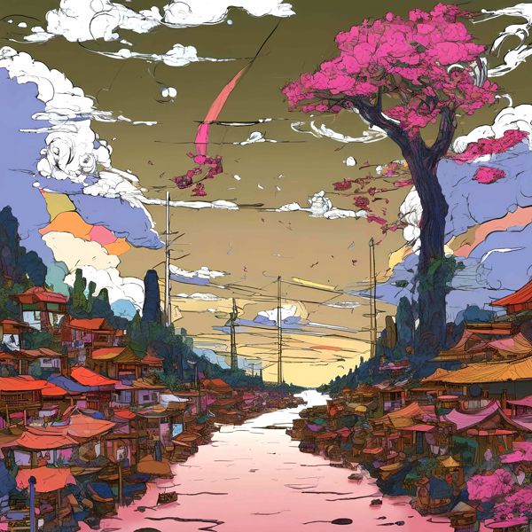 This image was created by ‘Kanabstracd,’ an art unit formed by the creator and the AI (Stable Diffusion XL 1.0 (1024), a program for creating AI artworks). I gave the program the word ‘Kanabstracd surrealism Hiroshige’ as a prompt and let it create. Also “surrealism Hiroshige ” was used as the negative prompt.