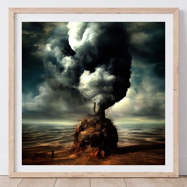 制作者と AI (AI アート作成用のプログラム Stable Diffusion XL 1.0 (1024)) とからなるアートユニット カナブストラクド によるアート画像です.そのプログラムに「Kanabstracd surrealism thunder」ということば (prompt) をあたえて創造させました. 負のプロンプトとして「thunder」を指定しています.