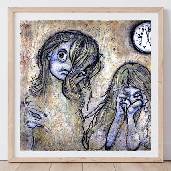 This image was created by ‘anonymous,’ an art unit formed by the creator and the AI (Stable Diffusion 2.1 (768), a program for creating AI artworks). I gave the program the word ‘Klimt Klee anxiety’ as a prompt and let it create. Also “Klimt_Klee ” was used as the negative prompt.