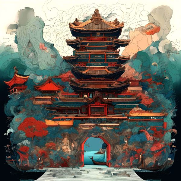これらの画像は通常の AI アートとはちがう独自の方法を使って作っています. AI アートは AI にプロンプト (または呪文) とよばれる英語の記述をあたえて作画した画像ですが, Stable Diffusion,DALL・E 2,Midjourney などの AI プログラムによって 2022 年に爆発的に普及しました. AI アートで望む画像を作るために通常は比較的細かい指示を与えます. しかしデイシンではおもに 1〜4 語程度の短いことばや造語を Stable Diffusion XL 1.0 (1024) を使用している OpenArt,NightCafe などのウェブサイトで使用して,そのプログラムがもつ知識をいかして自由に (ジェネラティブに,創発的に) 画像をつくらせています. コントラストの調整等はしていますが,描きなおさせたり加筆したりするようなことはしていません.