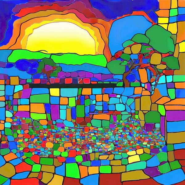 制作者と AI (AI アート作成用のプログラム Stable Diffusion XL 1.0 (1024)) とからなるアートユニット カナブストラクド によるアート画像です.そのプログラムに「Kanabstracd surrealism Seurat」ということば (prompt) をあたえて創造させました. 負のプロンプトとして「surrealism Seurat arrows」を指定しています.
