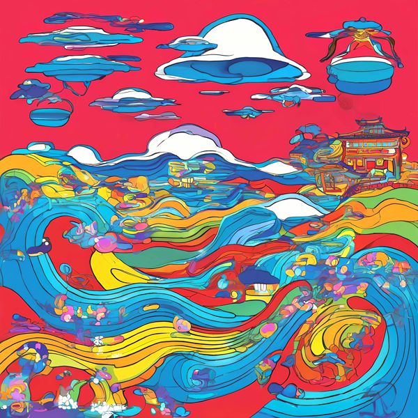 制作者と AI (AI アート作成用のプログラム Stable Diffusion XL 1.0 (1024)) とからなるアートユニット カナブストラクド によるアート画像です.そのプログラムに「Kanabstracd surrealism Hiroshige」ということば (prompt) をあたえて創造させました. 負のプロンプトとして「surrealism Hiroshige Fletching」を指定しています.
