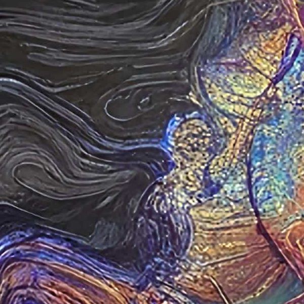 AI アートでは通常 A6 サイズ相当くらい (縦横 500〜1000 ピクセルくらい) の荒い画像しかつくれないので,超解像という技術をつかって原画より解像度を 4〜8 倍に (こまかく) しています. ただし,上の商品画像の解像度は原画と同程度なのでご注意ください.