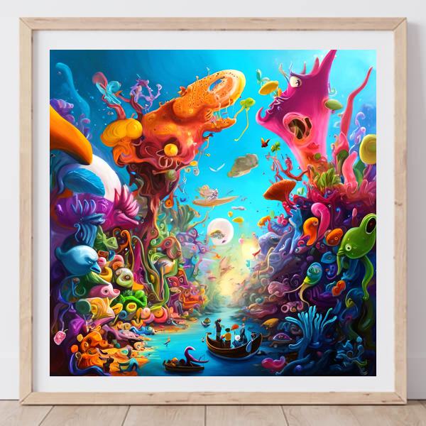 In AI art, the images generated are usually quite rough—about the size of an A6 print (roughly 500–1000 pixels on each side). To make them suitable for presentation, I use a technique called super-resolution, which increases the resolution 4–8 times higher than the original, adding finer detail. However, please note that the resolution of the product image shown above is about the same as the original and has not been upscaled.