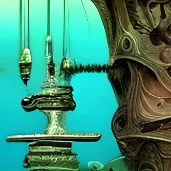 制作者と AI (AI アート作成用のプログラム Stable Diffusion XL 1.0 (1024)) とからなるアートユニット カナブストラクド によるアート画像です.そのプログラムに「Kanabstracd surrealism ancient」ということば (prompt) をあたえて創造させました. 負のプロンプトとして「ancient checker circles」を指定しています.