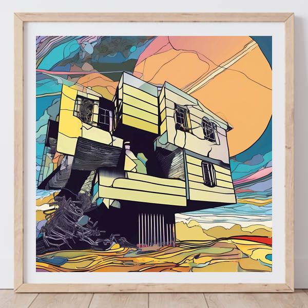 制作者と AI (AI アート作成用のプログラム Stable Diffusion XL 1.0 (1024)) とからなるアートユニット カナブストラクド によるアート画像です.そのプログラムに「Kanabstracd surreal Gerrit_Rietveld」ということば (prompt) をあたえて創造させました. 負のプロンプトとして「Gerrit_Rietveld」を指定しています.