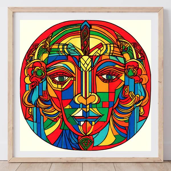 制作者と AI (AI アート作成用のプログラム Stable Diffusion XL 1.0 (1024)) とからなるアートユニット カナブストラクド によるアート画像です.そのプログラムに「Kanabstracd intricate Picasso」ということば (prompt) をあたえて創造させました. 負のプロンプトとして「grayscale Pollock」を指定しています.