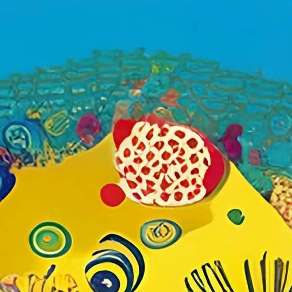 制作者と AI (AI アート作成用のプログラム Stable Diffusion XL 1.0 (1024)) とからなるアートユニット カナブストラクド によるアート画像です.そのプログラムに「Kanabstracd immunity」ということば (prompt) をあたえて創造させました. 負のプロンプトとして「immunity Fletching」を指定しています.