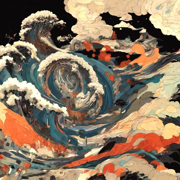This image was created by ‘Kanabstracd,’ an art unit formed by the creator and the AI (Stable Diffusion XL 1.0 (1024), a program for creating AI artworks). I gave the program the word ‘Kanabstracd Hokusai surrealism’ as a prompt and let it create. Also “Hokusai ” was used as the negative prompt.