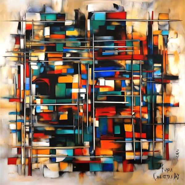 制作者と AI (AI アート作成用のプログラム Stable Diffusion XL 1.0 (1024)) とからなるアートユニット カナブストラクド によるアート画像です.そのプログラムに「Kanabstracd Dulounay」ということば (prompt) をあたえて創造させました.