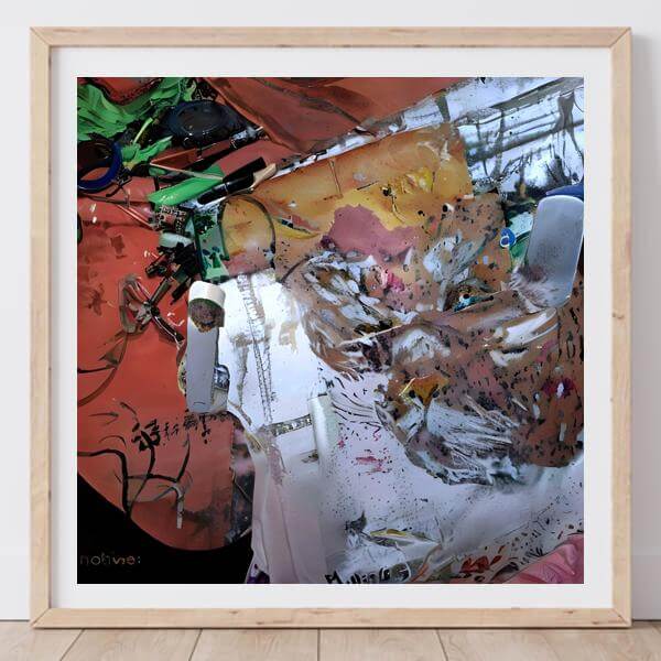 AI アートでは通常 A6 サイズ相当くらい (縦横 500〜1000 ピクセルくらい) の荒い画像しかつくれないので,超解像という技術をつかって原画より解像度を 4〜8 倍に (こまかく) しています. ただし,上の商品画像の解像度は原画以下なのでご注意ください.