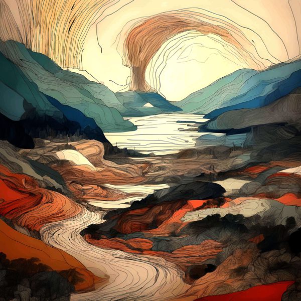 これらの画像は通常の AI アートとはちがう独自の方法を使って作っています. AI アートは AI にプロンプト (または呪文) とよばれる英語の記述をあたえて作画した画像ですが, Stable Diffusion,DALL・E 2,Midjourney などの AI プログラムによって 2022 年に爆発的に普及しました. AI アートで望む画像を作るために通常は比較的細かい指示を与えます. しかしデイシンではおもに 1〜4 語程度の短いことばや造語を Stable Diffusion XL 1.0 (1024) を使用している OpenArt,NightCafe などのウェブサイトで使用して,そのプログラムがもつ知識をいかして自由に (ジェネラティブに,創発的に) 画像をつくらせています. コントラストの調整等はしていますが,描きなおさせたり加筆したりするようなことはしていません.