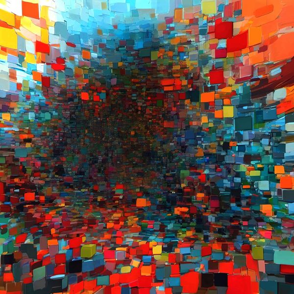 制作者と AI (AI アート作成用のプログラム Stable Diffusion XL 1.0 (1024)) とからなるアートユニット カナブストラクド によるアート画像です.そのプログラムに「Kanabstracd Seurat」ということば (prompt) をあたえて創造させました. 負のプロンプトとして「Seurat Utamaro」を指定しています.