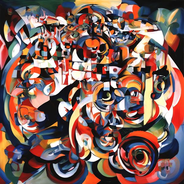 制作者と AI (AI アート作成用のプログラム Stable Diffusion XL 1.0 (1024)) とからなるアートユニット カナブストラクド によるアート画像です.そのプログラムに「Kanabstracd surrealism Delaunay」ということば (prompt) をあたえて創造させました. 負のプロンプトとして「Delaunay ovals」を指定しています.