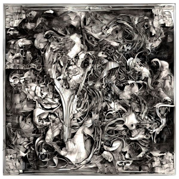 これらの画像は通常の AI アートとはちがう独自の方法を使って作っています. AI アートは AI にプロンプト (または呪文) とよばれる英語の記述をあたえて作画した画像ですが, Stable Diffusion,DALL・E 2,Midjourney などの AI プログラムによって 2022 年に爆発的に普及しました. AI アートで望む画像を作るために通常は比較的細かい指示を与えます. しかしデイシンではおもに 1〜4 語程度の短いことばや造語を Stable Diffusion XL 1.0 (1024) を使用している OpenArt,NightCafe などのウェブサイトで使用して,そのプログラムがもつ知識をいかして自由に (ジェネラティブに,創発的に) 画像をつくらせています. コントラストの調整等はしていますが,描きなおさせたり加筆したりするようなことはしていません.