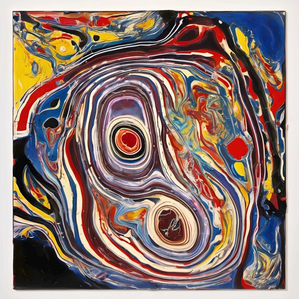 制作者と AI (AI アート作成用のプログラム Stable Diffusion XL 1.0 (1024)) とからなるアートユニット によるアート画像です.そのプログラムに「Kanabstacd pollock」ということば (prompt) をあたえて創造させました. 負のプロンプトとして「pollock barbeds」を指定しています.