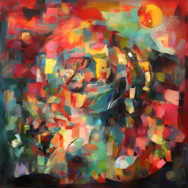 制作者と AI (AI アート作成用のプログラム Stable Diffusion XL 1.0 (1024)) とからなるアートユニット カナブストラクド によるアート画像です.そのプログラムに「Kanabstracd surrealism Gauguin」ということば (prompt) をあたえて創造させました. 負のプロンプトとして「surrealism Gauguin barbeds」を指定しています.