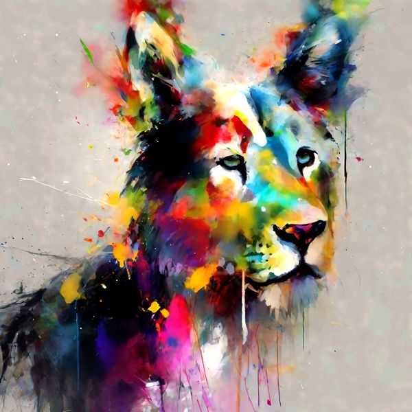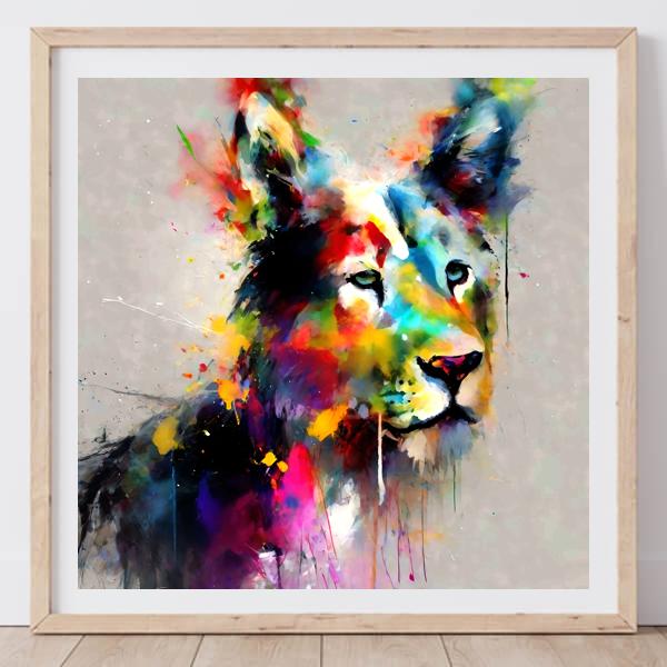 AI アートでは通常 A6 サイズ相当くらい (縦横 500〜1000 ピクセルくらい) の荒い画像しかつくれないので,超解像という技術をつかって原画より解像度を 4〜8 倍に (こまかく) しています. ただし,上の商品画像の解像度は原画と同程度なのでご注意ください.