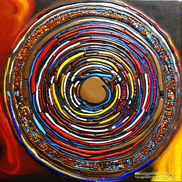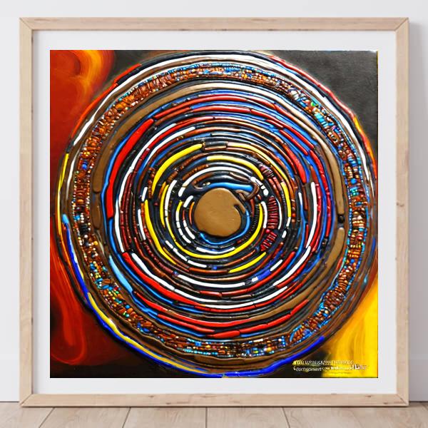 This image was created by ‘Kanabstracd,’ an art unit formed by the creator and the AI (Stable Diffusion XL 1.0 (1024), a program for creating AI artworks). I gave the program the word ‘Kanabstracd aboriginalart’ as a prompt and let it create. Also “Camouflage ” was used as the negative prompt.