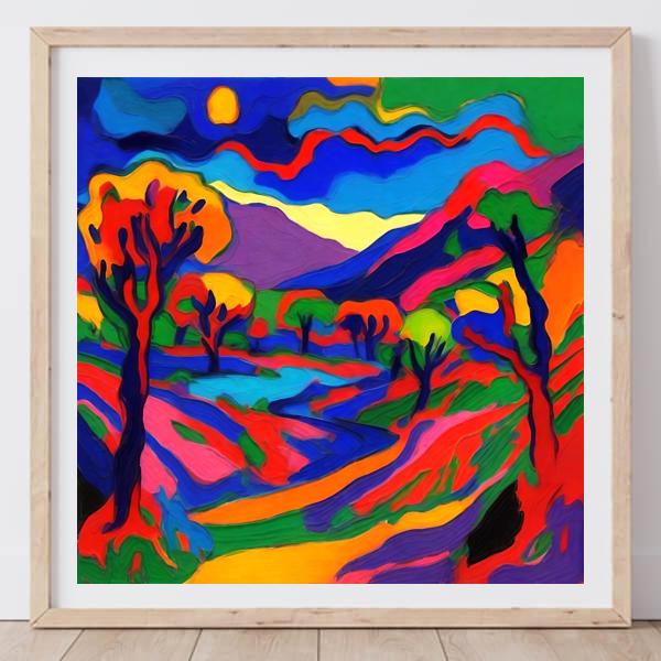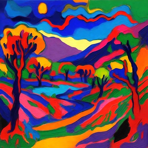 制作者と AI (AI アート作成用のプログラム Stable Diffusion XL 1.0 (1024)) とからなるアートユニット カナブストラクド によるアート画像です.そのプログラムに「Kanabstracd fauvism」ということば (prompt) をあたえて創造させました. 負のプロンプトとして「checker」を指定しています.