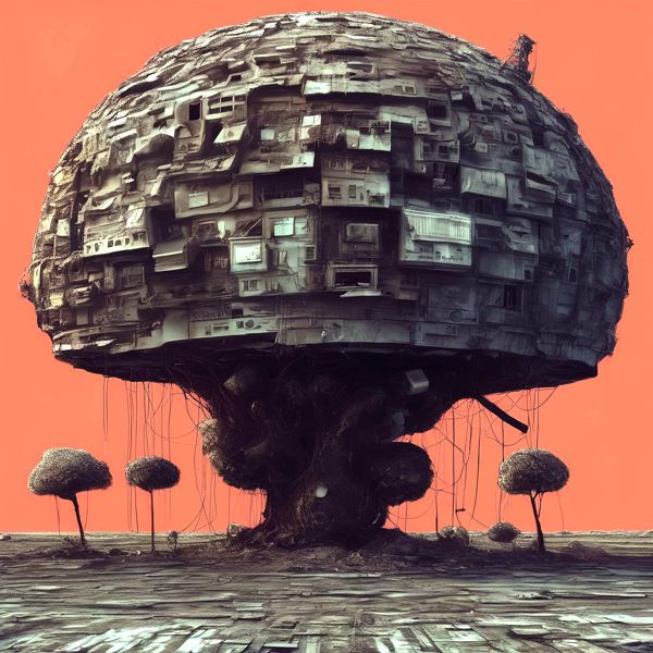 制作者と AI (AI アート作成用のプログラム Stable Diffusion XL 1.0 (1024)) とからなるアートユニット カナブストラクド によるアート画像です.そのプログラムに「Kanabstracd surrealism mosq」ということば (prompt) をあたえて創造させました. 負のプロンプトとして「surrealism mosq Fletching」を指定しています.