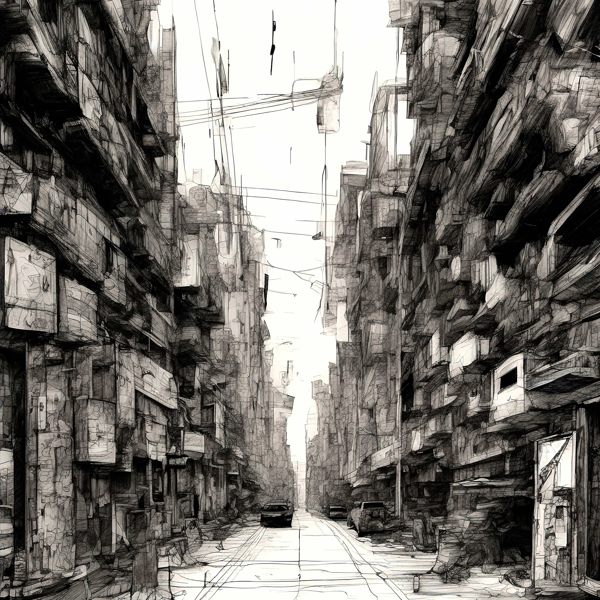 これらの画像は通常の AI アートとはちがう独自の方法を使って作っています. AI アートは AI にプロンプト (または呪文) とよばれる英語の記述をあたえて作画した画像ですが, Stable Diffusion,DALL・E 2,Midjourney などの AI プログラムによって 2022 年に爆発的に普及しました. AI アートで望む画像を作るために通常は比較的細かい指示を与えます. しかしデイシンではおもに 1〜4 語程度の短いことばや造語を Stable Diffusion XL 1.0 (1024) を使用している OpenArt,NightCafe などのウェブサイトで使用して,そのプログラムがもつ知識をいかして自由に (ジェネラティブに,創発的に) 画像をつくらせています. コントラストの調整等はしていますが,描きなおさせたり加筆したりするようなことはしていません.