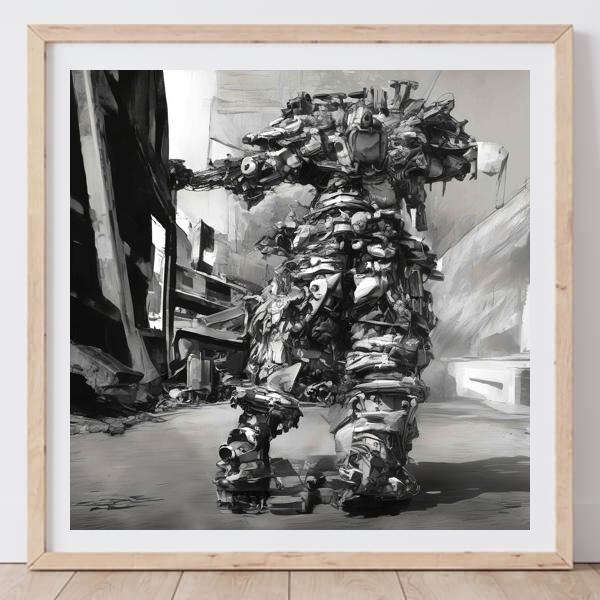 制作者と AI (AI アート作成用のプログラム Stable Diffusion XL 1.0 (1024)) とからなるアートユニット カナブストラクド によるアート画像です.そのプログラムに「Kanabstracd borot absurd_realism」ということば (prompt) をあたえて創造させました. 負のプロンプトとして「mesh」を指定しています.