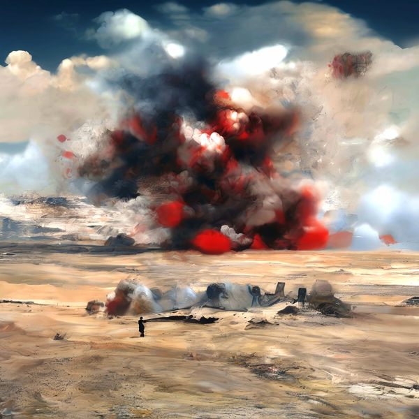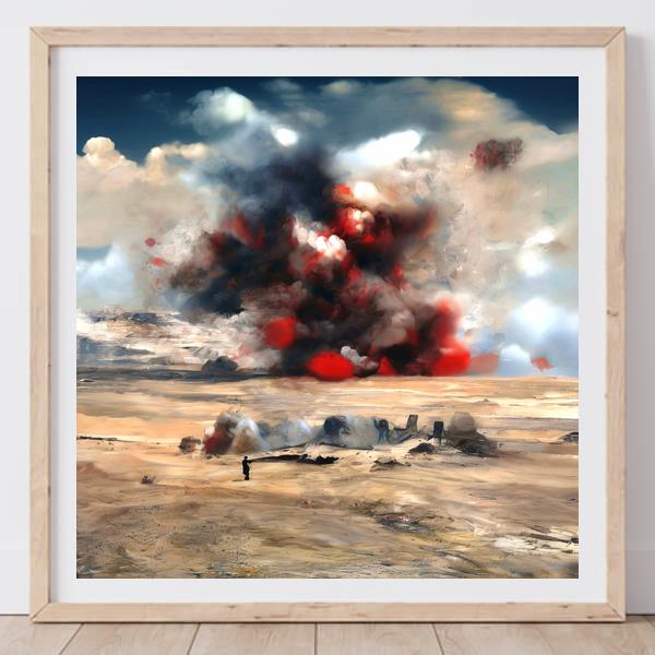 制作者と AI (AI アート作成用のプログラム Stable Diffusion XL 1.0 (1024)) とからなるアートユニット カナブストラクド によるアート画像です.そのプログラムに「Kanabstracd surrealism tragedy」ということば (prompt) をあたえて創造させました. 負のプロンプトとして「surrealism tragedy mesh」を指定しています.